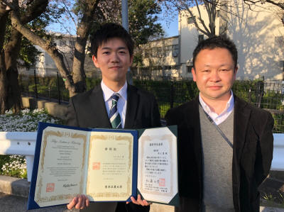井上君と久保さんがどちらも原子核工学コース修士優秀学生表彰を受賞し、久保さんは原子力学会フェロー賞も受賞しました!