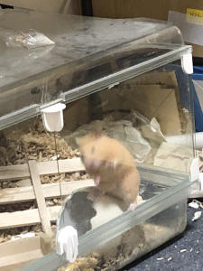 回し車(最近全然回さない)の中で外の様子を伺うチー太郎。私に気づいて寄ってくる。要求は散歩か煎り大豆かマカダミアナッツか。脂っこいのはあまり良くないんだが…