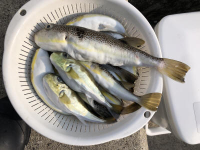 釣果:ショウサイフグ 16~30 cm 11匹 + シロサバフグ 15 cm 2匹 + イシモチ 20 cm 1匹